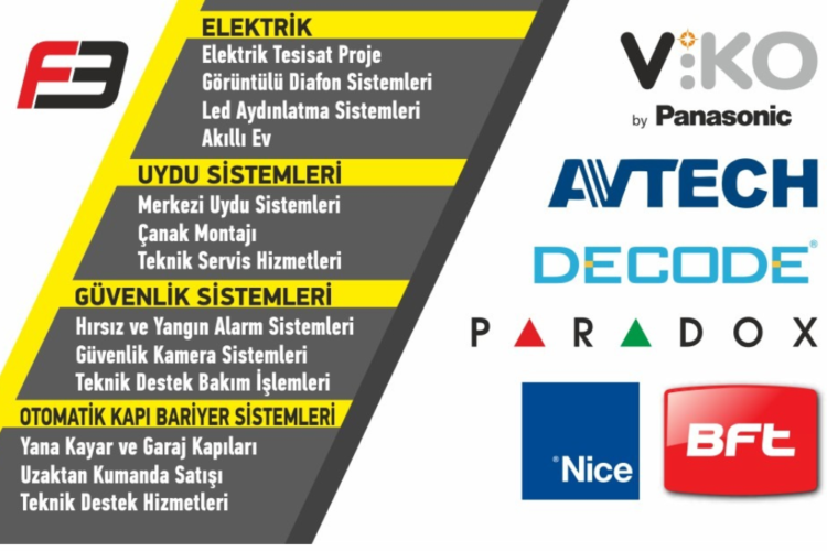 Geleceğin teknolojisini bugünden müşterilerimize sunmayı ilke edindik. Viko by Panasonic, Avtech, Decode, Paradox, Nice, BFT markalarının ürünlerini ve hizmet çözümlerini siz değerli müşterilerimize sunuyoruz.